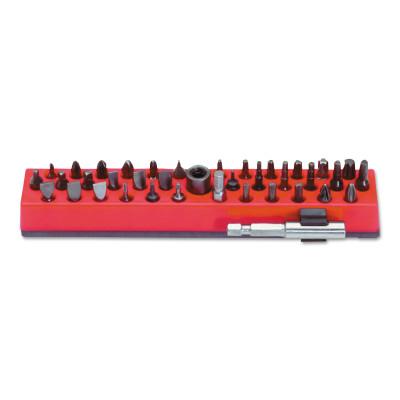 • Includes = (4) Phillips #0 - #3; (1) #2 Reduced Dia.; (2) Slotted; (4) Slotted Insert Bits; (10) Torx T6 - T40; (2) Pozidriv #1, #2; (6) Socket Heads 3/32 - 3/16 in; (4) Square Recess #0 - #3; (3) Clutches 1/8, 5/32, 3/16 in; Magnetic Bit Holder; Bit Holder; Magnetic Base